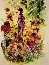 종이에 수채화와 콜라주