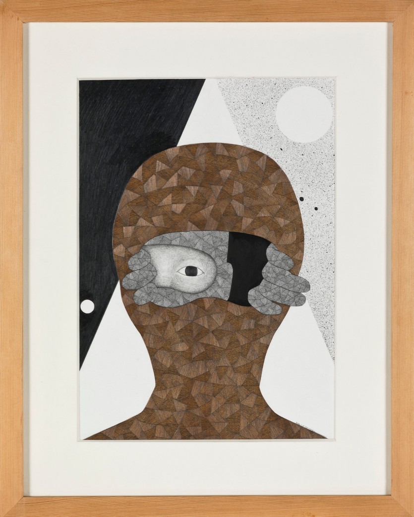 pencil and red clay on paper